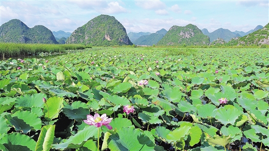山连水,水绕山,青峰错落,湖泊星罗棋布,如诗如画的普者黑早已声名远播。今年夏天,普者黑又一次火出圈,而这一次圈粉的主角,是连连盛开的并蒂莲。 7月初,丘北县普者黑村村民发现了一枝罕见的双色并蒂莲,堪称“奇花”,这一消息迅速登上各大网络热搜榜,全网点击量过亿。更奇的是,接下来一个月里,普者黑景区又陆续发现了7枝并蒂莲,有同色,也有双色。最后一枝的两朵荷花均为红色,是普者黑野生荷花中非常珍贵的重瓣“红色并蒂莲”,网友给它们取了个名字叫“粉粉”。 并蒂莲是荷花变种 “接天莲叶无穷碧,映日荷花别样红”是普者黑盛夏的写照。普者黑人说,人间仙境普者黑,最美的并不是电视剧里的十里桃花,而是那万亩荷田。 暑气蒸腾,驾一只小船,悠悠然驶入普者黑湖深处。船头破开水面,徐徐往前,一路荷叶翻飞、荷花婀娜。普者黑的荷花开得正盛,所见多为淡红与雅白色,红如薄施粉黛,白如透光白瓷,浓淡相宜。 据了解,普者黑每年的6至8月盛开的荷花有200多个品种,有单瓣、复瓣、重瓣及重台等,涵盖了中国荷花的3个系、50个群和28个组。最特别的是白莲、红莲、大洒锦和小洒锦这4个土生土长的品种,在清代乾隆《开化府志》中就有记载:“夏有荷(红、白、锦三种)……” 茎杆一枝,花开两朵。自古以来,人们便视并蒂莲为吉祥、喜庆的象征,善良、美丽的化身。67岁的方永华是最早看到双色并蒂莲的村民,说起来他难掩兴奋:“长这么大,同色的、甚至三朵的三品莲都见过,双色的是头一回见。” 村民们认为,这朵双色并蒂莲一边是红色带白斑的“大洒锦”,一边是白色带红斑的“小洒锦”。中科院上海辰山植物科学研究中心研究员田代科认为,并蒂莲是荷花中的一个变种,实际上,它一茎产生两花,花各有蒂,蒂在花茎上连在一起,所以也有人称它为并头莲、同心芙蓉、合欢莲、瑞莲。一个花柄上出现两个品种的并蒂莲是不可能的,这朵并蒂莲应为花瓣花色斑块突变为红色大斑块的小洒锦。“这肯定是基因表达过程出了问题(变异),具体机制非常复杂。我们正计划研究其分子形成机制。”田代科说。 生物多样性与特有性并存 普者黑处于滇黔桂喀斯特地貌的核心地带,出现了峰丛与河流,发育了石笋石牙,呈现出多样化的地貌特征。由于该区域地质结构组成的特殊性,形成了类似夹心饼干的隔水层,保留了珍贵的地表水,形成了大面积溶蚀湖群水域,孕育了普者黑丰富的生物多样性与特有性。 丘北普者黑省级自然保护区管护局资源保护管理科副科长刁茳介绍,普者黑湖群地处中国三大特有植物中心之一的滇、黔、桂古特有中心的重要组成部分——滇东南古特有中心腹地,是云贵高原极具代表性和典型性的喀斯特湖泊湿地生态系统。 普者黑多样的生境条件,促进了喀斯特地区常见的同域地理分化现象,分化了许多普者黑地区的狭域特有物种,如洞穴鱼类中的无眼金线鲃、丘北盲高原鳅,湿地植物中的莲等。 2011年12月,规划总面积1107.4公顷的云南普者黑喀斯特国家湿地公园被批准为国家湿地公园试点,并于2017年12月通过国家级验收。在此期间,以国家湿地公园试点为抓手,普者黑湿地保护与生态修复全面升级,动物生境日益改善,生物多样性愈加丰富,普者黑湿地鱼类资源、鸟类种类和数量、植物均有大幅度增加。 吃上旅游饭更加懂生态 为了保护好普者黑的生物多样性,有关部门扩大了该地区的生态保护边界,从普者黑湿地国家公园扩大到了388平方公里的普者黑景区;广泛宣传,生态优先、绿色发展的理念深入人心;同时,一系列硬核“加减法”措施落实到位,生态做加法、治污做减法。 2017年以来,普者黑景区清理拆除“两违”建筑339户3.1万平方米,清理整治上游鱼塘308个,改造民居971户。累计投资12.25亿元,建成两个污水处理厂,实施普者黑村、仙人洞村的环湖截污工程等20余个生态环境保护项目。通过生态环境“三减一加”保护整治,建成湖滨带11.6公里,退塘还湿3300余亩。湿地保育区恢复植被1631亩。 数据的背后,是普者黑生态文明建设的不懈努力,迈入“十四五”,州、县党委政府对普者黑污染防治再次提档升级,对普者黑695.2平方公里流域进行全流域保护。 普者黑人对“绿水青山就是金山银山”这句话深有感悟,仙人洞村村小组长范成元说:“大家都知道,没有这一汪清水,就没有今天的好日子。村规民约规定不得采摘野生荷花,人工种植的荷田才能食用。” 吃上旅游饭,更加懂生态,荷花荷韵已成为普者黑民宿的金字招牌。村民方永华说:“我家的鱼塘退塘还湿后种下一片白荷,反而成了住店客人最喜欢拍照与休息的区域。” 普者黑的美像一幅画,山在水里,水在山中,山水相依。普者黑的美如一面镜,照见人与自然的和谐共生,美美与共。 本报记者 张文峰