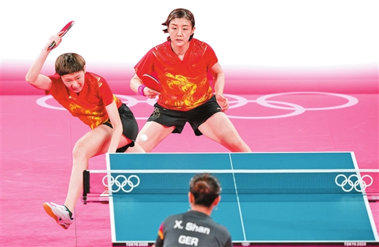 考验整体实力的奥运会乒乓球团体赛进行到第四天依然无人爆冷,中国女队4日上午以第三个3:0击败半决赛对手德国队,预约了5日晚与东道主日本队间的一场冠军之争。 作为团体项目自2008年北京奥运会加入乒乓球赛“套餐”以来的唯一金牌得主,中国女队“团战”三场三次变阵,本场派出了孙颖莎去“捉”对方“一单”韩莹。 20岁的石家庄小将不负众望,时不时重锤出击,将“打不死”的削球手限制在有限板数内。作为有经验的老将,韩莹削中带攻,结合变线和改变节奏,也有自己的场上闪耀时刻,不过杀招终究不及攻球手,以6:11、4:11、9:11告负。 此前率先上演的双打比赛也以中国队毫无悬念的3:0胜利告终,王曼昱搭档陈梦以11:9、11:2、11:4速胜单晓娜/索尔佳。 第三场的单打对战中,陈梦起拍失误频频,首局以5:11速败于索尔佳。第二局开始,新冕奥运女单冠军逐渐找回自己的节奏,11:4、11:9、13:11连扳三局,为中国队锁定胜利。 中国女队主教练李隼赛后说,陈梦的这场单打原本就不好打,对手此前几次在总决赛等场合给她制造麻烦,再加上陈梦之前经历了漫长而艰难的单打赛程,团体赛两名队友发挥出色的情况下偶尔会有些放松。“还是要让陈梦调动起来,紧张起来。” 谈及与日本队的决赛,李隼说:“这场决赛就是看发挥,(实力)其实差得不太多。” 3日晚举行的另外一场女团半决赛中,石川佳纯、伊藤美诚、平野美宇组成的日本队3:0轻取杜凯琹领衔的中国香港队,率先挺进决赛。伊藤美诚赛后说:“我都是按照完胜的标准去训练的,非常期待最终的决赛。”