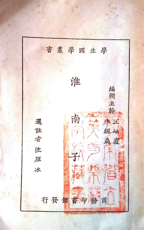 □ 师文涛 近日淘书时发现一本没有封面、民国15年(1926年)3月由商务印书馆出版的《淮南子》,是“学生国学丛书”中的一种。虽然没有封面,但因为选注者是现代著名作家沈雁冰(茅盾),而且扉页上钤着一方篆书印,因此和其他书一起买了回来。 晚上在灯下细看,才发现不只是扉页上钤着藏书印,在正文第一页下方也钤着同样的一枚藏书印。这方印纵7.5厘米,横4.7厘米,一共三行字,每行四字。我认识的篆字有限,大多只能联系上下文来猜。第三行四字是“学校藏书”,这是肯定的;第一行四字,虽然第一个字不是太清晰,但四个字“云南省立”也是确定无疑的。中间一行的四个字,我能确定的是“第”和“范”,至于“叁”和“师”,就只能猜了。虽然我自己就姓师,但这种篆书的写法却从未见过。查阅我手里的工具书——《十体字帖》和《书法字典》里都没有这种写法,一般都是写成左右结构,没有写成上下结构的。因此这方印的印文应该是“云南省立第三师范学校藏书”,证明这本书就是这个学校的藏书。 说起“云南省立第三师范学校”,就不能不提到它的创办人、曲靖市著名教育家谢显琳。 谢显琳,1887年生于富源(原称“平彝”)县雨旺乡的一个书香门第之家。他少年时期在家乡读私塾,学习刻苦,成绩优良,1903年考入曲靖府中学堂,1906年以优良成绩被选送云南省立优级师范学校学习。在三年的学习中,每次考试均为全校第一,受到校长周钟岳的器重,毕业后即留校任教。辛亥革命后,蔡锷任云南都督,蔡锷认为:建设需才,育才需学,设学必先师范。为了发展云南的师范教育,决定在曲靖设立云南省立第三师范学校,当时的省教育司司长周钟岳即委任谢显琳出任校长。1913年3月下旬,云南省立第三师范正式开学,招生范围为曲靖府所辖的曲靖县、沾益、陆良、马龙、罗平、师宗、富源、会泽、宣威、寻甸及泸西、丘北、弥勒等。学校初创,学校的校训是“勤学业、守校规、习劳苦、甘淡泊、崇道德、尚美感、爱国家、遵宪法”。学校风气良好,学生读书兴趣浓厚,受到社会的称赞。谢显琳在执教的半个多世纪中,连续担任该校校长长达45年。 1932年,学校改为云南省立曲靖中学,附设乡村师范。1934年,曲靖中学更名为曲靖师范学校,1935年又把师范学校改名为省立曲靖中学。之后又反复改变名字,恰如《三国演义》之中所说的:天下大势,分久必合,合久必分。所以它实际上是现在曲靖一中和师范学院的前身。而我,又是毕业于曲靖师专中文系的,所以这本书和我是有渊源的,能遇到它,不能不说是一种缘分。 早在1928年春,云南省立第三师范学校就成立了曲靖第一个中共地下党支部,由陈香圃老师任书记,吴永康、丁锡禄、刘苑梅为支部委员。后吴永康等人于1929年春,在陆良县城的第一小学成立了中共陆良特别支部,吴永康任特支书记。1930年震动全省的“陆良暴动”,其中很多领导都曾是曲靖师范的学生,他们像火种一样,在陆良城乡的学校当中,点燃了推翻国民党统治的燎原之火。如宣威人徐文烈,在暴动后回到家乡,1935年红军长征经过宣威时,即参加红军,解放后被授予少将军衔…… 岁月荏苒,一眨眼,一百多年过去了,回望那段激情燃烧的岁月,我们不仅要珍惜今天的幸福生活,还要继续努力,把我们的国家建设得更加富强。