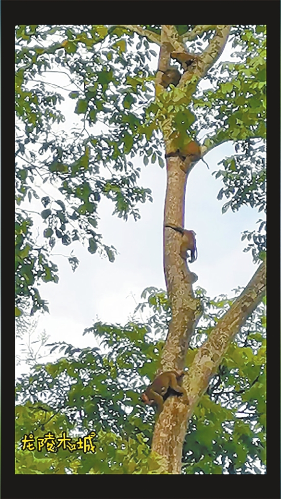 据介绍,当日19时许,正在江边巡护的工作队员突然被一棵茂密的大树上传来的“咿咿呀呀”吵闹声吸引了。循声看过去,原来是一群猴子在“搬家”,大大小小的猴子跟随猴王纷纷从树梢顶部向树下转移。其中,